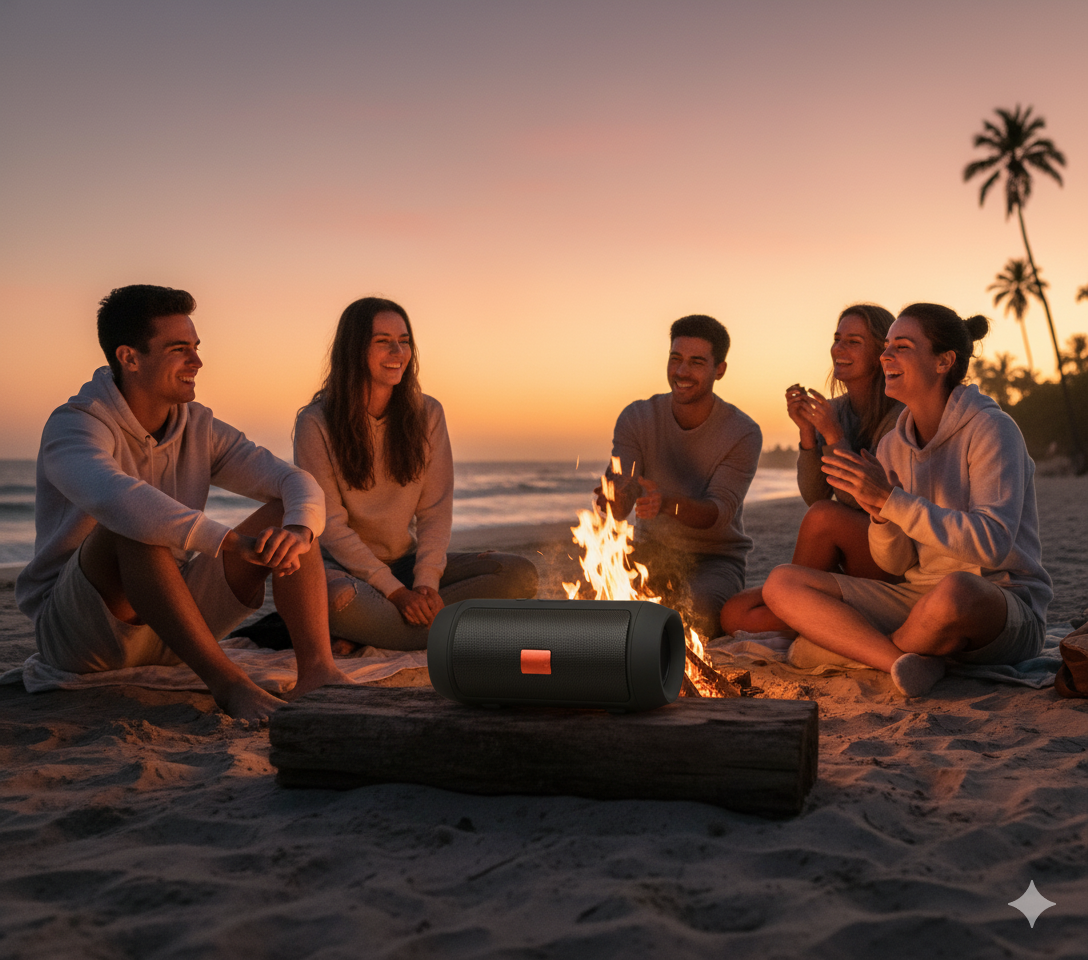 Sumérgete en una experiencia musical excepcional. Diseñado para acompañarte en tus aventuras al aire libre, este altavoz portátil combina bajos potentes, conectividad inalámbrica para crear el ambiente perfecto.